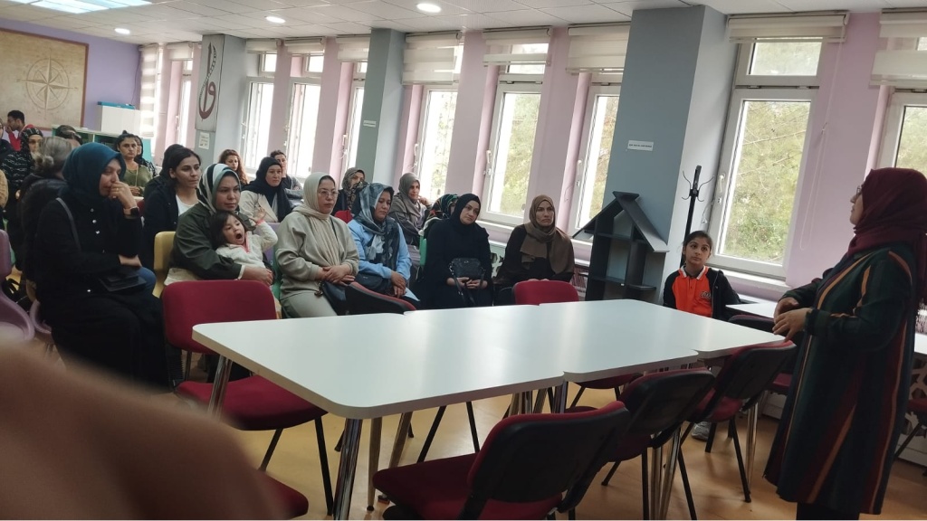 Okulumuz Reheberlik servisi Rehber Öğretmeni Asiye Şeyda ÇİÇEK Aile Eğitimlerine devam ediyor. Ailenin toplumumuzun en küçük yapı taşı olduğu, aile yıkıldığı taktirde toplumunda yıkılacağını belirtti. Sağlam ve sağlıklı bireyler yetiştirerek toplumun ayakta duracağını söyledi. Bu planda okulun ve aile bireylerinin birlikte hareket etmesi gerektiğini söyledi.